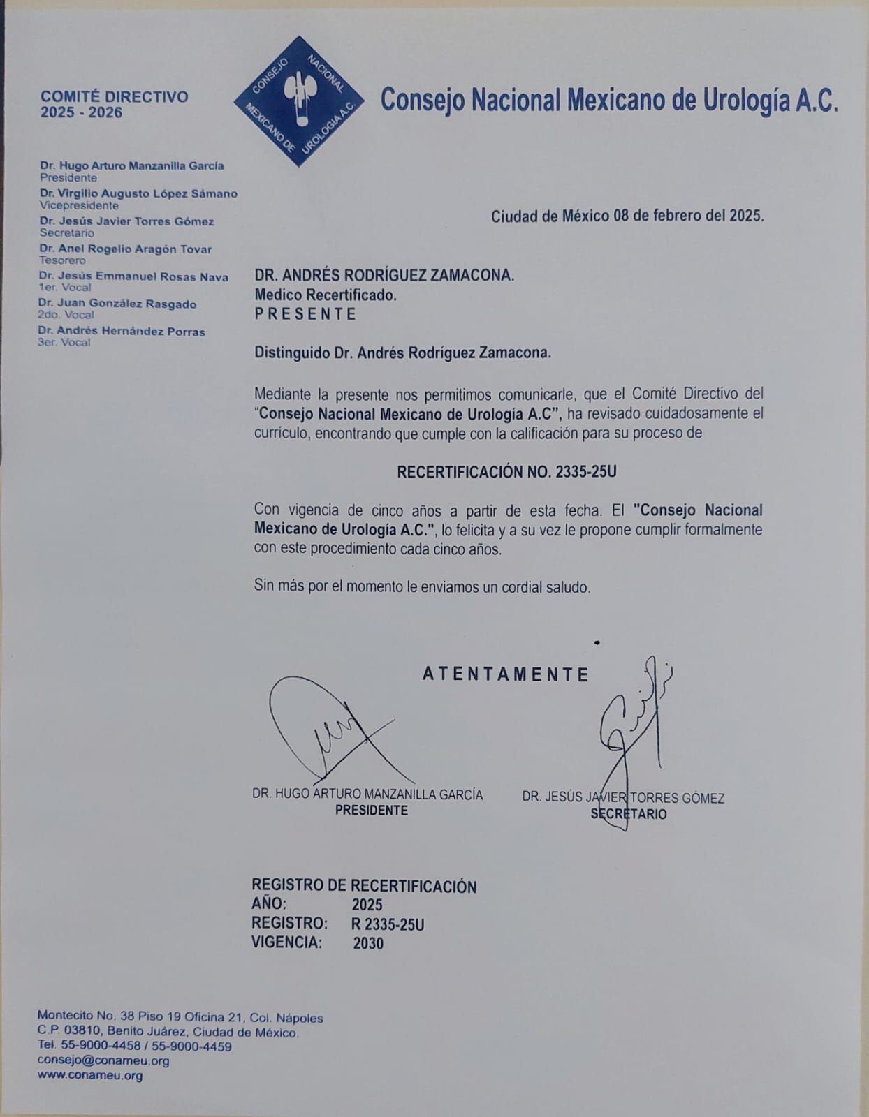 - MIEMBRO DE MESA DIRECTIVA DEL COLEGIO DE UROLOGOS GUERRERO 2025